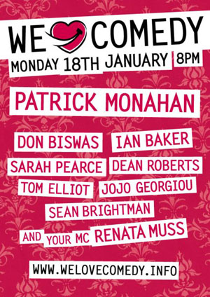 I was fortunate enough to have been invited to perform at the first We Love Comedy of 2010 (run by my good friends Sean Brightman and Renata Muss), and what a great night it was!