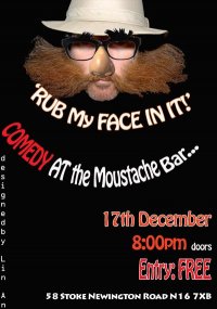 My second gig of the week was at Rub My Face In It at the Moustache Bar (an eccentric basement bar with walls covered in moustachioed versions of popular posters). I have to hand it to Liam and Johnny, they've got a really good night going, and managed to attract a sizeable audience.
