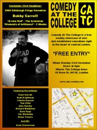 After a few weeks with only my regular 5 Minutes of Fame gig, I was getting a little itchy to go to some other nights, so I booked into CATC - a new, conveniently central night run by some friends of mine. The room had a nice, intimate feel, and although the audience was mainly other acts, everyone was really supportive (most of us knew each other from the open circuit) and it made for a really nice atmosphere.