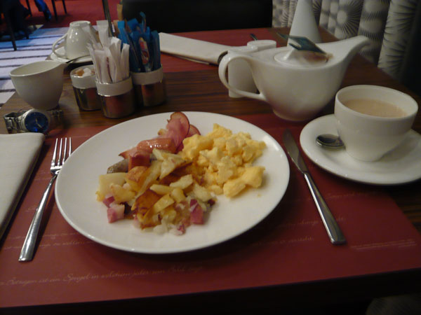 Now the buffet at the hotel in Berlin were far more savoury, with a selection of cold meats, sausage, eggs, and an interesting potato dish. I believe pastries and such were also available, but I'd had my fill of those in Paris.