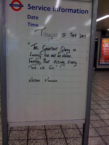Clapham North at the time had two very nice features. Firstly, they played classical music, and secondly, they had a quotes board. Or, more accurately, a service information board repurposed to provide inspiring morsels of thought on a daily basis.