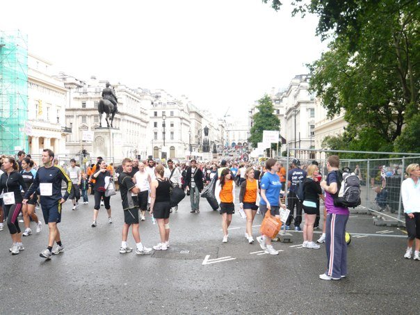 The Mall started to fill up pretty quick as everyone arrived, and we were soon queueing for everything: bag drop off, toilets, the start. The event certainly lived up to the theme of Britishness! And in true stiff-upper-lipped style, we were treated to a rousing series of patriotic tunes blaring from the loudspeakers...before being deflated by the announcement that the first lot to start had already finished while we were waiting.